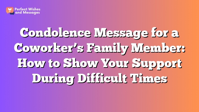 Offering a heartfelt message of condolence can go a long way in providing comfort and support to your coworker during their time of need. A simple gesture like sending a card, a thoughtful email, or offering a listening ear can mean the world to someone who is grieving. Letting your coworker know that you are there for them and that they have your support can help ease their burden and bring some solace during a difficult time.
