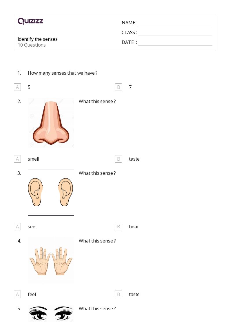 50+ The 5 Senses worksheets for Kindergarten on Quizizz Free & Printable