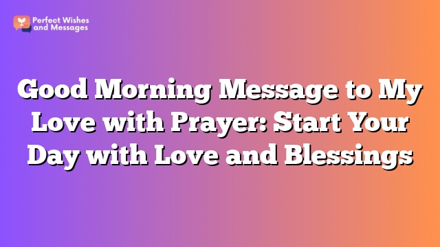 I hope this article has inspired you to send a beautiful good morning message to your love with a prayer. Starting the day with love and positivity can truly set the tone for a wonderful day ahead. Remember to always cherish and appreciate your loved ones, and never underestimate the power of a heartfelt message. Thank you for taking the time to read this article, and I hope you visit again soon for more inspiration and tips on spreading love and joy. Have a blessed day!